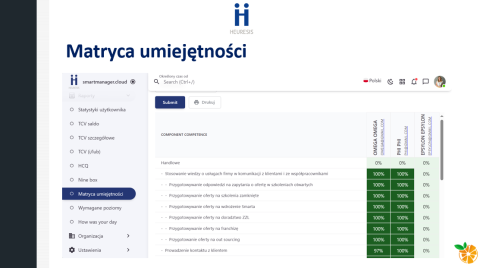 SmartManager® is a comprehensive HR software that supports the management of strategy, tasks, competencies and employee development. Conforming to the philosophy of sustainable management, it combines operational efficiency with human capital development, ensuring consistency of operations and data transparency. The system facilitates the implementation and monitoring of strategic objectives (OKR/KPI) and decision-making based on measurable indicators, supporting HR reporting and ESG/CSRD requirements. SmartManager® is an ideal tool for modern HR, automating processes and developing a culture of continuous learning.